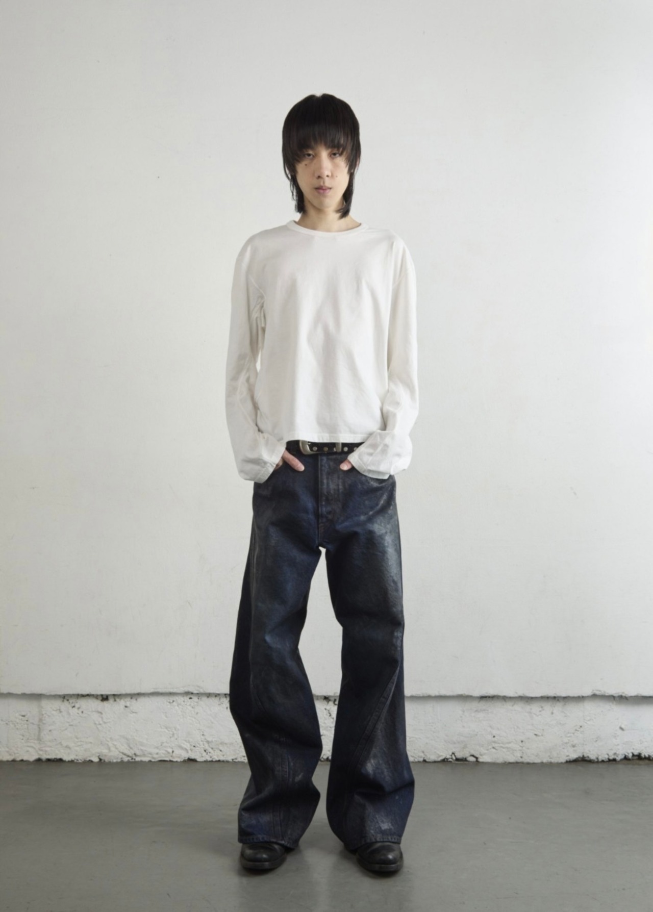 NVRFRGT | 3D TWISTED WIDE LEG JEANS | LUSTER COATED DARK INDIGO
