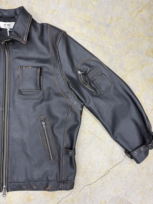 DAIRIKU | Millitary Leather Flight Jacket | Black×Brown
